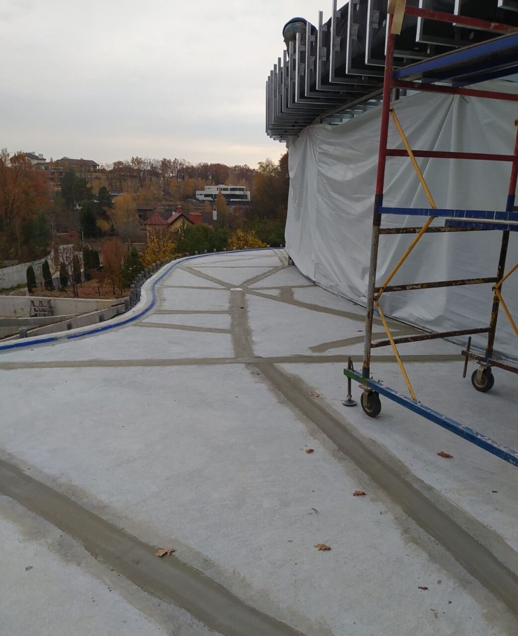 Тераси та балкони повністю герметизовані, включаючи вузли водовідведення. Створена система готова до укладання плитки та гарантує відсутність протікань під конструкцію підлоги.