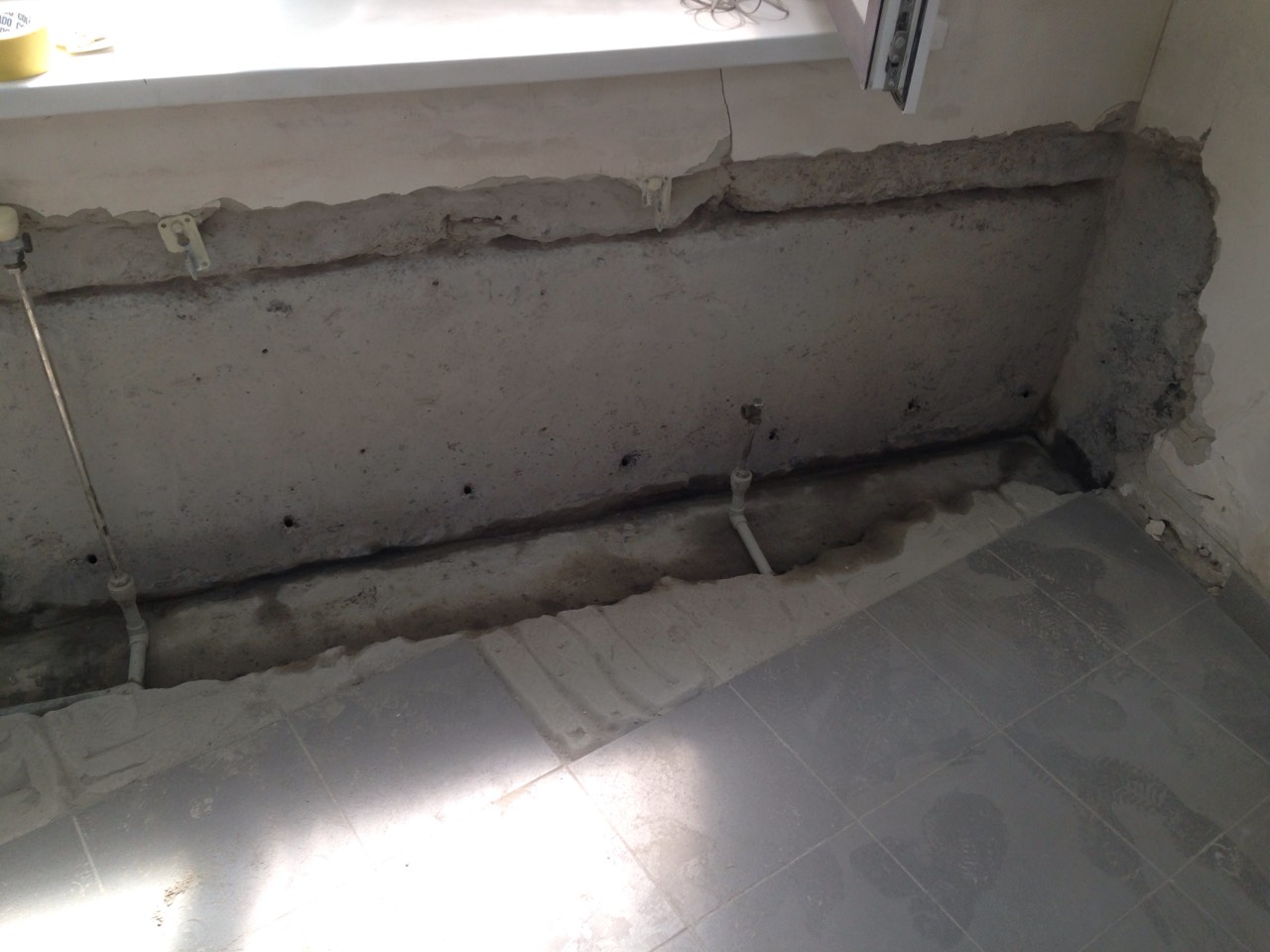 Досить часто крізь стіни підвалу проходять комунікації. Ці місця вводів також звичайно ж потрібно герметизувати. Для цього потрібно на глибині 5-10 см пройти навколо труби або закладної поліуретановим герметиком, що розширюється. Простір, що залишився запакувати безусадковим матеріалом KRYS RM Fast. Поверх нанести еластичний матеріал KRYS Flex у 2 шари (по аналогії з швом або примиканням).