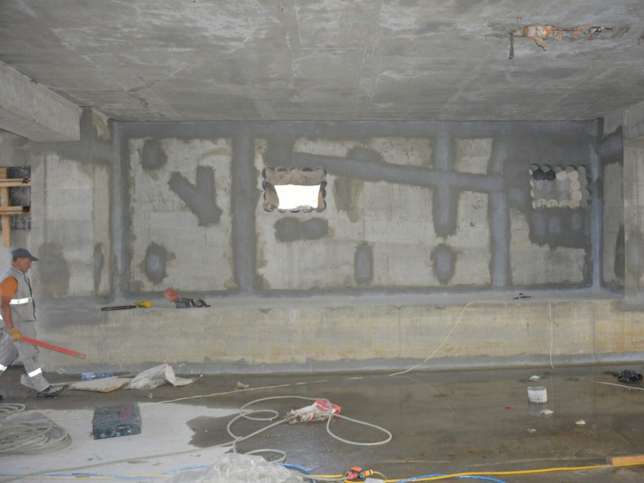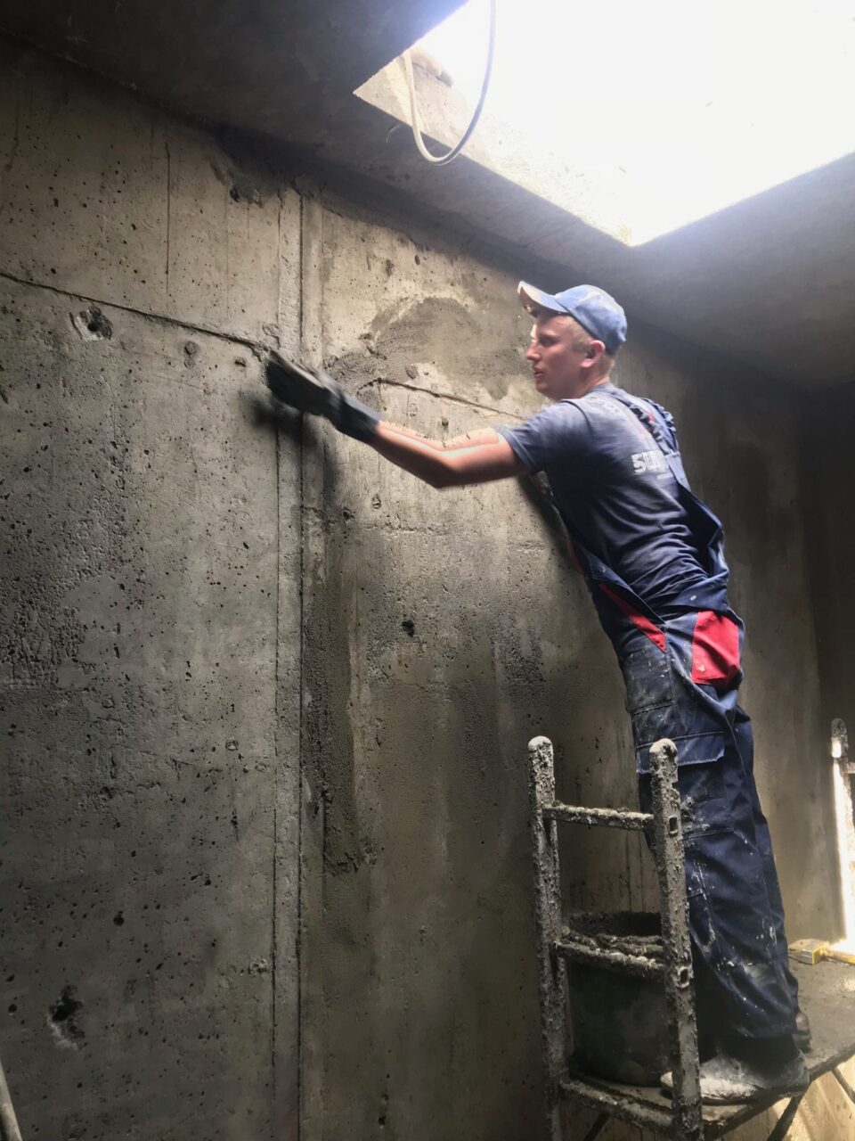 Полімерцементні матеріали KRYS працюють виключно з першою основою, яка найчастіше і є найміцнішою. Тому перше завдання – це дістатися до нього. Необхідно демонтувати все оздоблення, штукатурку, виконати земляні роботи (якщо виконується гідроізоляція ззовні). Далі необхідно забезпечити ідеально чисте рівну бетонну поверхню. Без неміцних частинок, будь-якого пилу або сторонніх покриттів. Вихідні дані у кожного різні: декоративне оздоблення, штукатурка, стара гідроізоляція, крихкі частинки на блоках, виступи, каверни, просто бруд і т.д. Але в цілому потрібно прийти до одного результату – чисті рівні бетонні блоки.