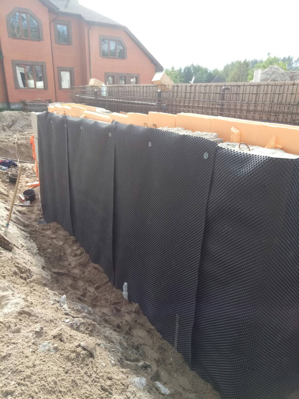 У разі зовнішньої гідроізоляції підвалу, то в більшості випадків відразу на гідроізоляцію клеїться утеплювач типу екструдованого пенополістрірола і монтується дренажна мембрана (в основному для захисту при зворотній засипці). Це забезпечує надійний захист і довговічність виконаного покриття.