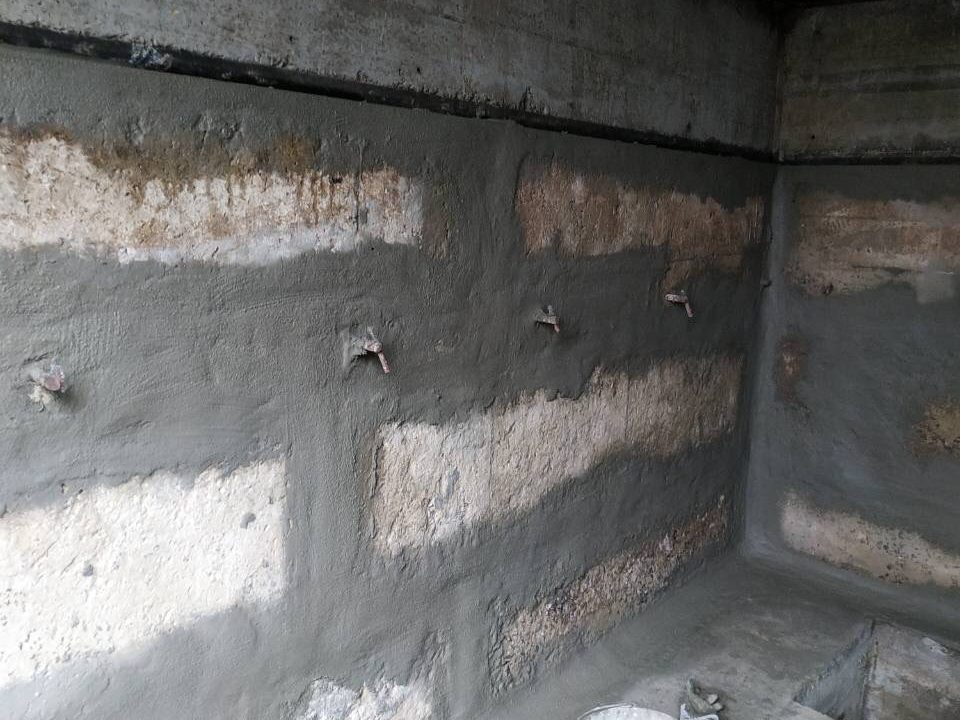 Усередині також можна виконувати будь-який комплекс подальшої обробки (якщо планується), можна навіть залишити як є. Головне це не пошкодити гідроізоляційне покриття. Якщо планується штукатурка по маякам, то маяки кріпити тільки на клеях типу “рідкі цвяхи”. Часто виникає гостра необхідність зробити отвори в стінах, порушивши гідроізоляцію. Зроблений отвір потрібно спочатку заповнити поліуретановим герметиком, що розширюється при контакті з водою і далі монтувати дюбель. Покриття екологічно безпечне, пройдені випробування і застосовується навіть в резервуарах з постійним контактом з питною водою.