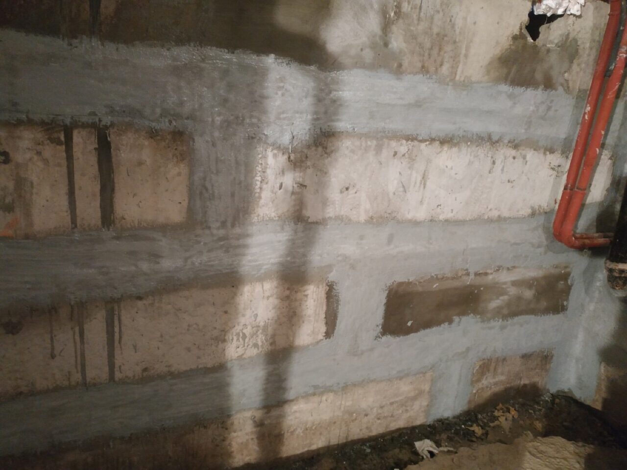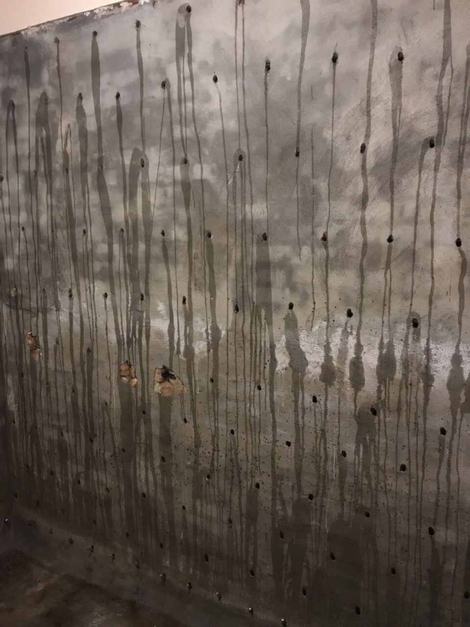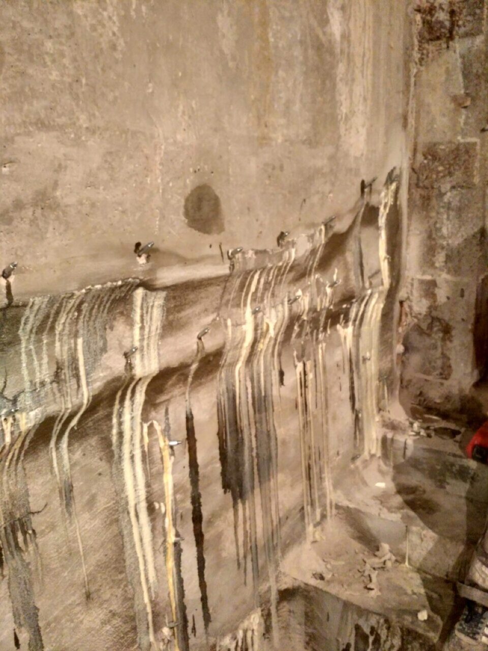 Іноді, наявний дуже великий тиск води і вона фактично йде зі стіни, і по суті немає можливості виконати шпаклювання KRYS RM Fast або оштукатурювання. У такому випадку спочатку виконується ін’єктування спеціальними матеріалами, що розширюються при контакті з водою і вже потім виконується етап “Підготовка стін. Улаштування примикань”.